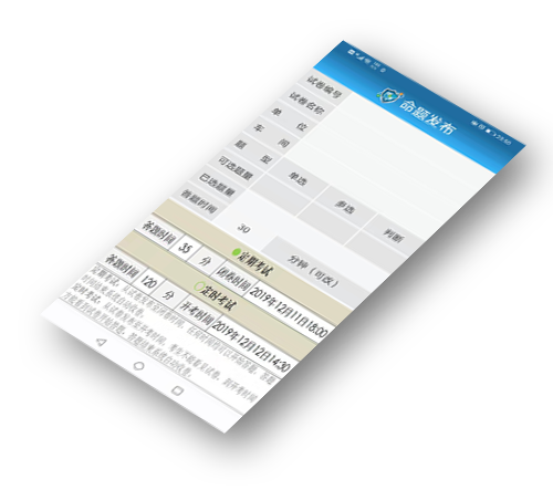 試卷命題,智能(néng)判卷,開(kāi)啓您智慧教育模式。不(bù)用(yòng)筆(bǐ)、不(bù)用(yòng)紙(zhǐ)、不(bù)用(yòng)在電(diàn)腦(nǎo)上(shàng)操作(zuò)≈,隻要(yào)手指在手機(jī)端屏幕上(shàng)點一(yī)點,通(tōng)過選擇考試範圍,平台自(zì)動命題₹,并可(kě)變更題型、題量、考試時(shí)間(jiān),同時(shí)可(kě)預覽題幹、答(dá)案和(hé)更換、删除試題。應試人(rén)員(yuán)答(dá)題結束¥,平台智能(néng)判卷、統計(jì)分(fēn)析、公示排名,并具備導出存檔和(hé)打印功能(néng)。